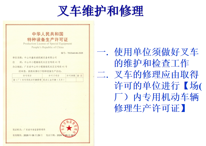 特種設(shè)備使用須知(叉車)
