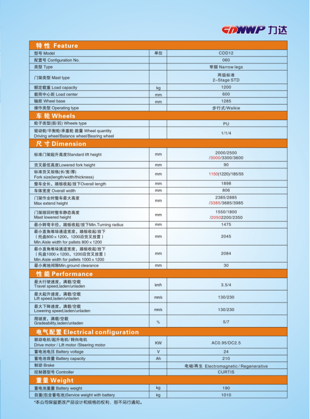 CDD12-060 當前位置:首頁>產(chǎn)品中心>力達電動叉車